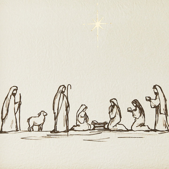 Inspiring Nativity Design: Features a serene depiction of the Nativity scene with the Bethlehem Star shining above, symbolizing hope and faith.